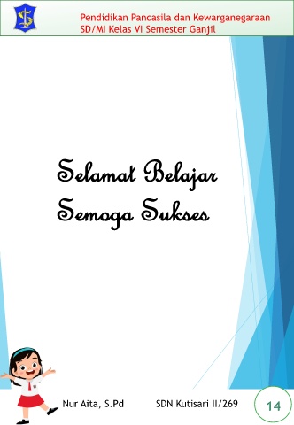 Pendidikan Pancasila dan Kewarganegaraan SD/MI Kelas VI Semester Ganjil Selamat Belajar Semoga Sukses Nur Aita, S.Pd SDN Kutisari II/269