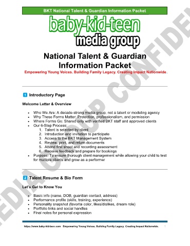 Page 2 - baby Kid TEEN Media Group National Guardian and Talent Informational Packet 2025 SAMPLE