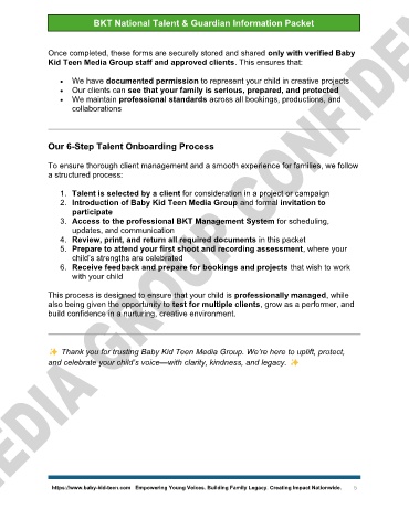 Page 6 - baby Kid TEEN Media Group National Guardian and Talent Informational Packet 2025 SAMPLE