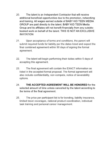 and training. All wages earned outside of BABY KID TEEN MEDIA