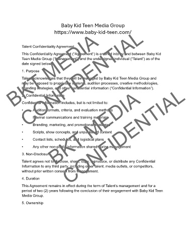 Talent acknowledges that they will be managed by Baby Kid Teen Media Group and
