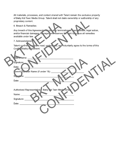 of Baby Kid Teen Media Group. Talent shall not claim ownership or authorship of any