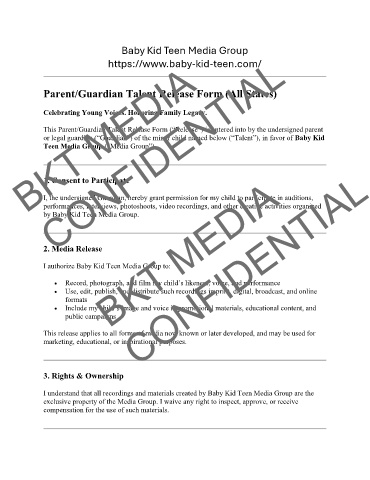 This Parent/Guardian Talent Release Form (“Release”) is entered into by the undersigned parent