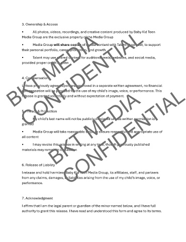 • All photos, videos, recordings, and creative content produced by Baby Kid Teen