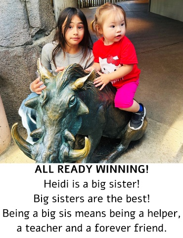 ALL READY WINNING! Heidi is a big sister! Big sisters are the best! Being a big sis means being a helper, a teacher and a forever friend.