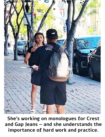 She’s working on monologues for Crest and Gap Jeans — and she understands the importance of hard work and practice.