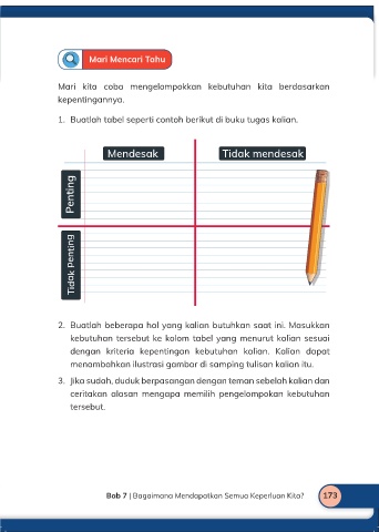 Mari kita coba mengelompokkan kebutuhan kita berdasarkan