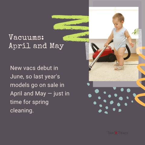 Vacuums: April and May New vacs debut in June, so last year's models go on sale in April and May — just in time for spring cleaning.