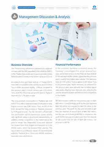 In the economic backdrop mentioned above, the Company’s consolidated (the group) revenue from sales and related services for the Financial Year 2024-25 (FY25) was Baht 24,981 million, higher than the previous year’s, mainly from higher sales volume. The deliveries were at 1.195 million Tons as against 1.120 million Tons in the previous year. Higher deliveries, as compared to the previous year, were primarily due to higher export sales, partly offset by lower domestic sales, reflecting the ongoing demand situation and intense price competition in the market.