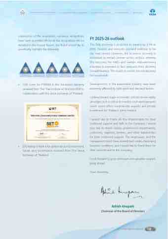 • CGR score for FY2024 in the Excellent category received from The Thai Institute of Directors (IOD) in collaboration with the Stock Exchange of Thailand.