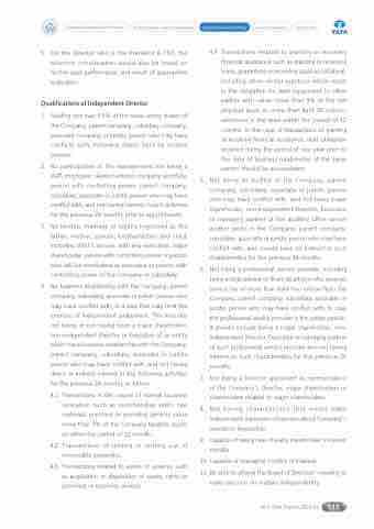 4. NobusinessrelationshipwiththeCompany,parent company, subsidiary, associate or juristic person who may have conflict with, in a way that may limit the exercise of independent judgement. This includes not being, or not having been a major shareholder, non-independent Director or Executive of an entity which have business relationship with the Company, parent company, subsidiary, associate or juristic person who may have conflict with, and not having direct or indirect interest in the following activities for the previous 24 months as follow.