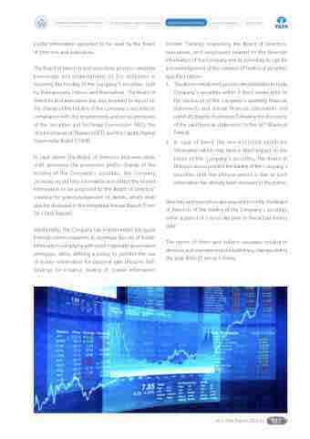 In case where the Board of Directors and executives shall announce the possession and/or change of the holding of the Company’s securities, the Company Secretary would help summarize and collect the related information to be proposed to the Board of Directors’ meeting for acknowledgement of details, which shall also be disclosed in the Integrated Annual Report (Form 56-1 One Report).