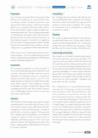 The Company and its subsidiary have a clear policy and framework based on the TATA Code of Conduct (TCoC) for its business implementation with transparency and equitability in dealing with all partners. Compliance with the fair commercial competition framework and TCoC, maintain payment standard by close monitoring of payment status to build good and long-term relationship with business partners. TCoC covers joint operations between the Company and its partners, for instance, regular training on safety have been extended to transport contractors.