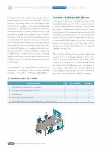 In Accordance with good Corporate Governance, the Board of Directors require the Directors and Committees to evaluate the performance annually to ensure that the Directors’ performance is effective and fair toward all stakeholders. The evaluations are done both as the whole Board and as individuals. The Board of Directors considers the evaluation to be a tool to help the Directors to improve their performance and also to identify the obstacles during the past year, if any. The result is analyzed and considered to find the conclusive standard for further development.