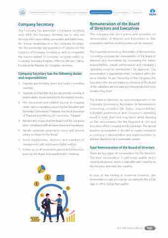 The Corporate Governance, Nomination & Remuneration Committee proposes the remuneration of the Board of Directors and Committees by considering the duties, responsibilities, overall performances and Company’s operating result to shareholders for approval. The remuneration is appropriate when compared within the same industry. As per the policy of the Company, the Executives who are nominated as a Director on the Board of the subsidiary are not paid any remuneration for such position they hold.