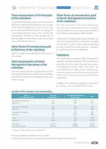 The total number of employees of the Company and its subsidiary as at 31 March 2025 was 1,070. For the financial year 2024–25, the Company has paid remuneration to its employees totaling to Baht 173.66 million. The remuneration includes salary, overtime, variable bonus, upcountry allowance/metro allowance and as benefit- in-kind such as social security and provident fund contributions.