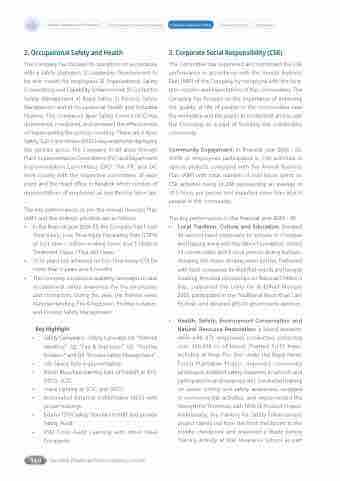 Community Engagement: In financial year 2024 - 25, 100% of employees participated in CSR activities in various projects complying with the Annual Business Plan (ABP) with total number of man-hours spent on CSR activities being 11,298 representing an average of 10.5 hours per person and impacted more than 64,614 people in the community.