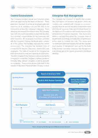 The Company has a process to identify and consider the implications of business risk factors which are continuously updated with changes in economic scenario, financial outlook, relevant industry environment and internal resources. Risks are prioritized based on the likelihood of occurrence and severity impact on the achievement of business objectives. Risk Assessment Matrix is cascaded throughout the Company. Head of Departments accordingly formulate the comprehensive action plan to mitigate the risks. The review and monitoring are performed regularly through the corporate level meeting of management team and by the Audit & Risk Review Committee. Enterprise Risk Management is an integral part of the reports presented in the Board Meetings.