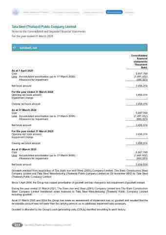 During the year ended 31 March 2021, The Siam Iron and Steel (2001) Company Limited and The Siam Construction Steel Company Limited transferred entire business to Tata Steel Manufacturing (Thailand) Public Company Limited including goodwill.
