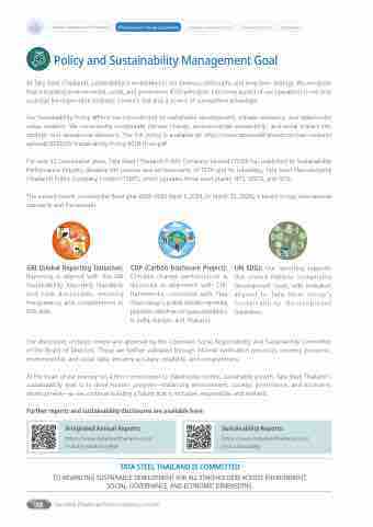 Our Sustainability Policy affirms our commitment to sustainable development, climate resilience, and stakeholder value creation. We consistently incorporate climate change, environmental stewardship, and social impact into strategic and operational decisions. The full policy is available at: https://www.tatasteelthailand.com/wp-content/ uploads/2022/05/Sustainability-Policy-2018-th-en.pdf