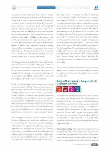 the mold. A trial of the Tundish Gas Diffuser (TGD) was also conducted to reduce inclusions. The Company uses digital technology to support customer services. Our sales representatives use Line applications, e-mail, and customer visit report programs to contact and listen to the customers’ feedback for improvements and to promptly respond to the needs of the customers. The Company deploys IT technology to enhance service speed like “TATA Steel TH Connect Phase 2” application to track customer’s order, e-Tax invoice & e-Receipt, Tag QR code, Certificate Online system, Cut and Bend web ordering, and Cut and Bend delivery tracking applications. The Company also offers additional online channels to contact with the customers via the Company’s website, Line application, Facebook, etc. and increases online sales channel through website ‘Baan Click Build’ for customers to access the products more conveniently and quickly.