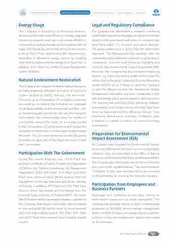 The Company has measures to restore natural resources, including improving utilization and value of ecological system related to plants, animals, soil and water. Following up and evaluation of restoration measures are made by monitoring key indicators on Corporate Social Responsibility and environmental activities, such as releasing aquatic animal into the sea, the mangrove reforestation, the environmental camp for children in communities around the plants, to encourage people in the communities to jointly preserve and restore the ecosystem of the forests in communities located nearby the plant. This promotes awareness among the young generation to take care of the forest resources in their own communities.