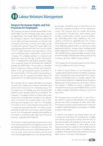 All employees will be treated with dignity and respect for which the Company has created a conductive work environment and respect for individual privacy. The Company does not tolerate any form of harassment whether sexual, physical, verbal or psychological. The Company is not against setting up of labor union and is ready to accommodate with compliance to all relevant laws. For instance, the erstwhile labor union in SCSC Plant has now changed to be in the form of Employee Committee to discuss issues with the management. The Company has appointed Women Committees at each plant and at head office to encourage, support and take care of women employees including subcontractors to be treated in accordance with Tata Code of Conduct properly, completely and stringently.