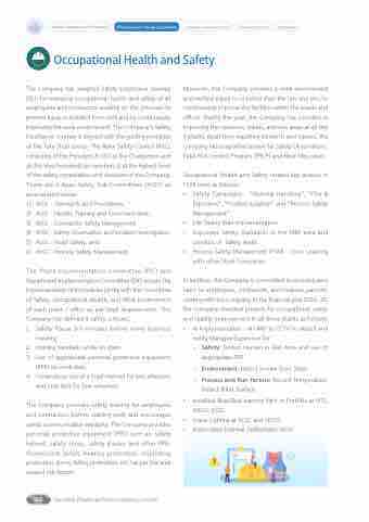 The Company provides safety training for employees and contractors before starting work and encourages safety communication regularly. The Company provides personal protective equipment (PPE) such as, safety helmet, safety shoes, safety glasses and other PPEs (fluorescent jacket, hearing protection, respiratory protection, glove, falling protection, etc.) as per the area related risk factors.