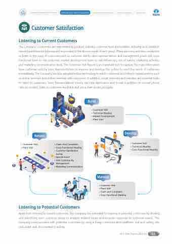 Apart from listening to current customers, the Company has extended to listening to potential customers by dividing and prioritizing each customer group to analyze related issues and broaden response to customer needs. The Company communicates with potential customers by using a 2-way communication platform; visit and calling, site visit, plant visit, and marketing activity.