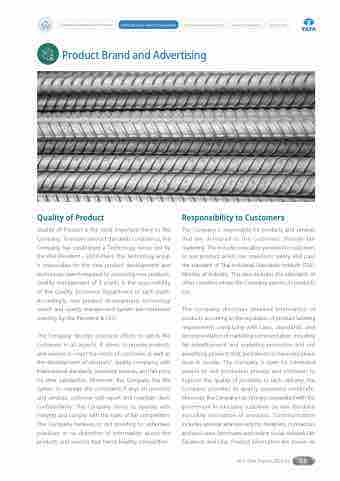 The Company devotes extensive efforts to satisfy the customers in all aspects. It strives to provide products and services to meet the needs of customers as well as the development of products’ quality complying with international standards, excellent services, and fair price for their satisfaction. Moreover, the Company has the system to manage the complaints if any) on products and services, customer visit report and maintain client confidentiality. The Company strives to operate with integrity and comply with the rules of fair competition. The Company believes in not resorting to unfairness practices or no distortion of information about the products and services that harms healthy competition.