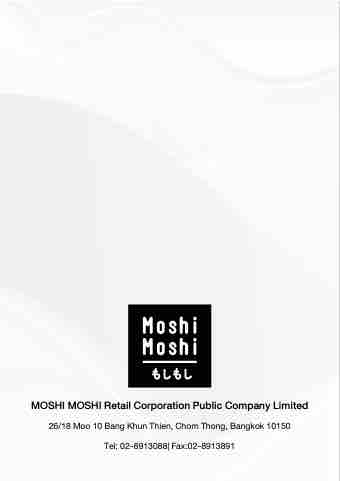 แบบแสดงรายการข้อมูลประจําปี / รายงานประจําปี 2566 (แบบ 56-1 One Report) 331 MOSHI MOSHI Retail Corporation Public Company Limited 26/18 Moo 10 Bang Khun Thien, Chom Thong, Bangkok 10150 Tel: 02-8913088| Fax:02-8913891