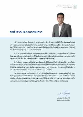 ในนามกรรมการบริษัท และฝ่ายบริหารบริษัท ไอ ทู เอ็นเตอร์ไพรซ์ จากัด (มหาชน) ขอขอบคุณท่านผู้ถือหุ้น ลูกค้า พันธมิตรทางการค้า และผู้มีส่วนได้ส่วนเสีย ในทุกภาคส่วนที่ไว้วางใจและให้การสนับสนุนบริษัทฯ ด้วยดีเสมอมา บริษัทฯ จะยึดมั่นการดาเนินธุรกิจอย่างมีธรรมาภิบาลและพัฒนาองค์กรให้มีศักยภาพ ในการบริการแก่ลูกค้าและจะมุ่งมั่นการสร้าง ผลตอบแทนและผลประโยชน์สูงสุดให้แก่ผู้มีส่วนได้ส่วนเสียทุกฝ่าย เพื่อให้บริษัทฯ เติบโตอย่างยั่งยืนตลอดไป