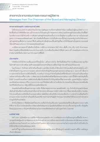 สดุ ทา้ ยนี้ ในฐานะตวั แทนของคณะบรหิ าร ผมขอขอบพระคณุ รฐั บาลไทย ผถู้ อื หนุ้ ลกู คา้ และพนกั งานทกุ ทา่ นทใี่ หก้ ารสนบั สนนุ เป็นอย่างดีตลอดมา
