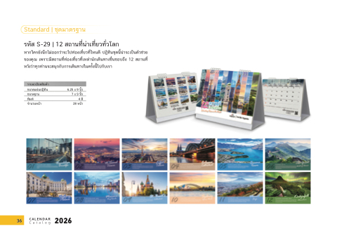 รหัส S-29 | 12 สถานทนี่ า่ เทีย่ วทัว่ โลก หากใครยังนึกไมอ่ อกว่าจะไปทอ่ งเที่ยวที่ไหนดี ปฏิทินชุดนี้นา่ จะเป็นตัวช่วย ของคุณ เพราะมีสถานที่ทอ่ งเที่ยวที่เหล่านักเดินทางช่ืนชอบถึง 12 สถานที่ หวังวา่ทุกทา่นจะสนุกกับการเดินทางในครงั้นีไ้ปกับเรา