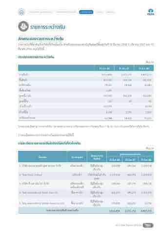 โปีรด้ด้รู ายละเอย่ ด้รายการระหวา่ งกน้ ใน “หมูายเหต้ปี้ ระกอบงบการเงนิ รวมูและงบการเงนิ เฉีพาะกจิ การ” ข้อ้ 33: รายการกบ้ บค้ คลหรอื กจิ การทเ่ กย่ วข้อ้ งกน้ รายละเอ่ยด้ข้องรายการระหว่างก้นแต้่ละปีระเภทมู่ด้้งน่