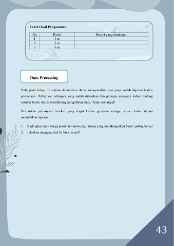 1. Badingkan dari ketiga posisi temanmu tadi mana yang mendengarkan bunyi paling keras!
