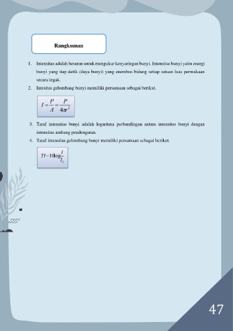 2. Intesitas gelombang bunyi memiliki persamaan sebagai berikut.