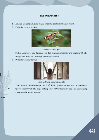 Seekor kupu-kupu yang berjarak 4 m dari pengamat memiliki taraf intensitar 60 dB.
