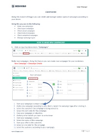 Make new campaigns: Using this feature you can create new campaigns for your customers.