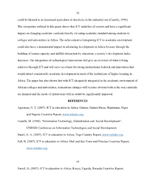 Africa. The paper has also shown that with ICT adequately integrated in the academic environment of