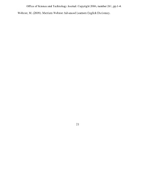 Office of Science and Technology Journal. Copyright 2006, number 261, pp.1-4. Webster, M. (2009). Merriam Webster Advanced Learners English Dictionary. 21