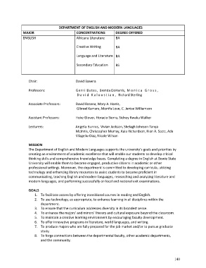 DEPARTMENT OF ENGLISH AND MODERN LANGUAGES