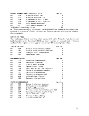 Sub-Field, and the United States Sub-Field. History Majors must take two courses in each of the three
