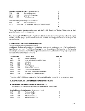 A. REQUIREMENTS FOR A MAJOR IN PURE MATHEMATICS