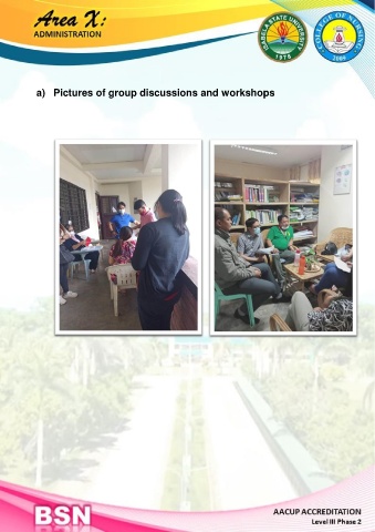 a) Pictures of group discussions and workshops