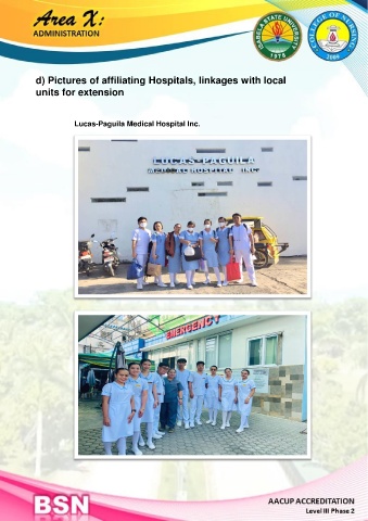 d) Pictures of affiliating Hospitals, linkages with local units for extension Lucas-Paguila Medical Hospital Inc.