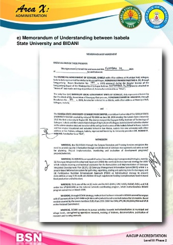 e) Memorandum of Understanding between Isabela State University and BIDANI