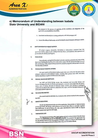 e) Memorandum of Understanding between Isabela State University and BIDANI