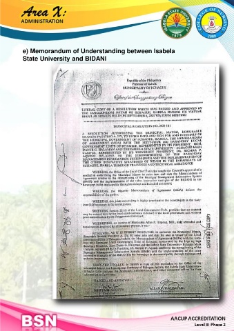 e) Memorandum of Understanding between Isabela State University and BIDANI