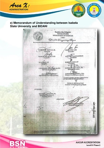 e) Memorandum of Understanding between Isabela State University and BIDANI